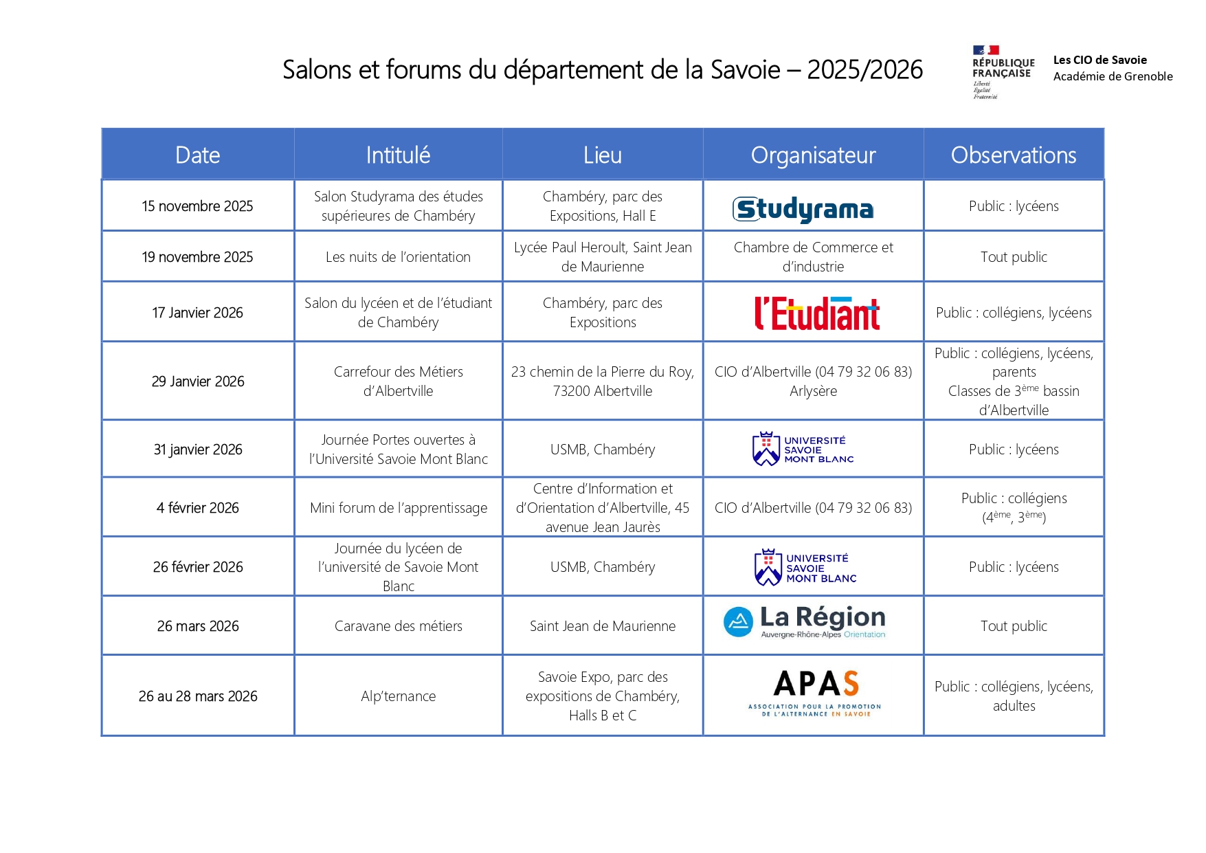 Pour préparer l'orientation de vos enfants, nous vous invitons à découvrir le programme des salons et des forums du département de la Savoie