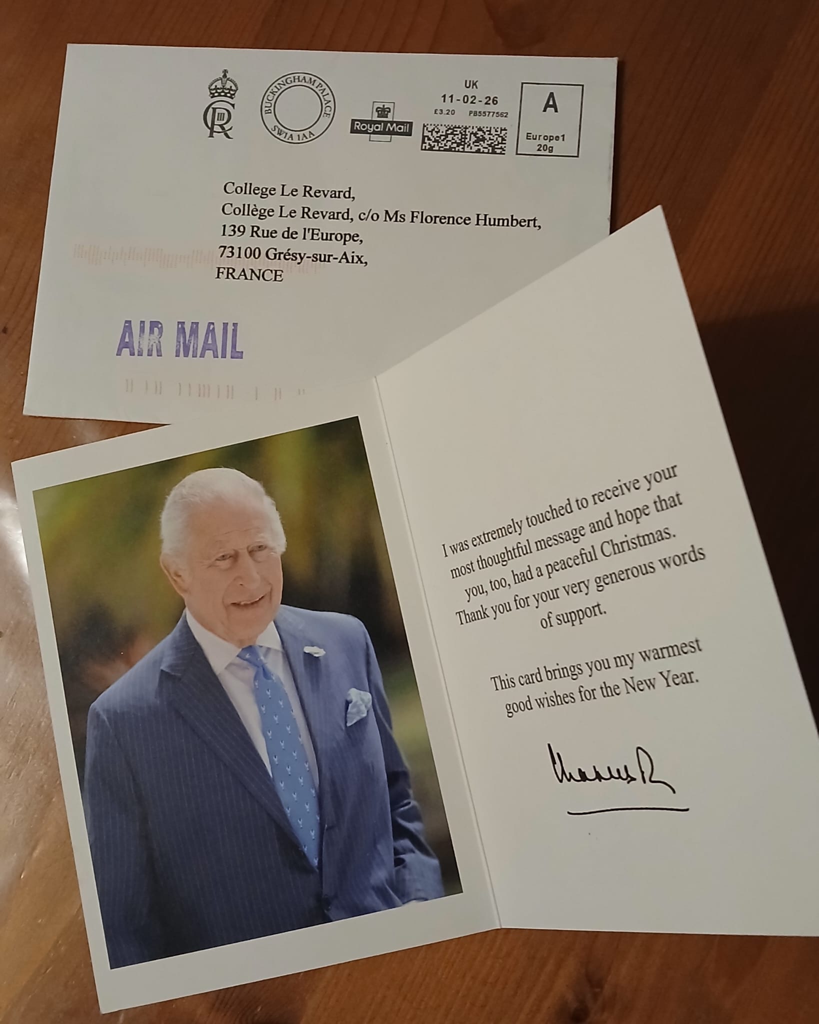 LA LETTRE DU ROI CHARLES III AUX ELEVES DU COLLEGE LE REVARD PUIS CELLE DU PRINCE WILLIAM!!!